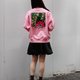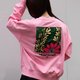 这两句谚语以刺绣呈现在背后,并将本季服装剩余的布料拼贴刺绣于这款厚实的圆领大学T上。