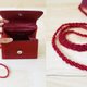 • 70年代复古斜背包/肩背包,手工制作,采用红色丝绸制成,配有红色串珠编织肩带,适合夜晚外出使用。
