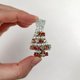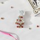这是一款使用珍珠串珠和粉色系宝石(水钻/水晶)制作而成的圣诞树胸针。