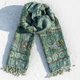 ▲喀什米尔靠近喜马拉雅山,为了对抗特殊的酷寒气候,水煮羊毛是喀什米尔利用当地自然环境发展出来的一种细致的工艺, 当地海拔高,水的沸点低,早晨在太阳上升时,将羊毛制品,放入融化的高原雪水中浸泡,之后加热沸煮。到了傍晚太阳下山时,再把羊毛制品在月光下晒,经由繁复工续后的产品, 不但可以清除掉一些杂质,羊毛产生收缩,纤维之间更加地紧密,最后经由妇女手工编织及刺绣,呈现一件件颜色及绣法独特的织品