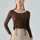 上身舒适感时尚度100分的长袖外搭~!带有精致的大圆领领和两边抽绳设计,弧形下摆营造出漂亮腰线!修身效果拉满!浅浅温柔的粉彩色系,柔软舒适罗纹面料,出汗也不会粘身,让你从家里、瑜伽馆到街头都Free to flow!