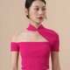 这款针织镂空旗袍上衣独特而时尚。微微修身的剪裁轮廓优雅动人,而单肩露出的设计又增添了性感迷人的气息。立领造型融入了东方旗袍元素与艳丽的色彩相碰撞更显相得益彰