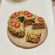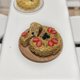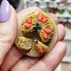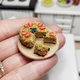 Honey cake on a board. The cake is decorated with fruit. This is a realistic miniature, suitable for a dollhouse or collection. The entire composition is made of polymer clay, wooden board. Honey cake is decorated with strawberries and blueberries. Glued to the board is a cake and two pieces of cake.