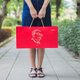 提袋以大红色雾面200磅的铜西纸制作而成,再辅以烫雾金的小蒋茶铺图像及中英文商标,外观喜气又大方。