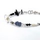 由蓝晶石、玛瑙、雪花黑曜石为主石,搭配多种水晶及银管所编织而成的蓝/黑色系天然矿石项链。