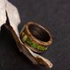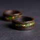 这些环由沼泽橡木和透明环氧树脂制成,内部有金箔和天然苔藓。