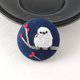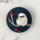 这是以北海道栖息的“雪之精灵”之称的雪鸲鸟为主题的刺绣胸针。