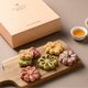 以暮酿经典手作纯酿酱油揉入米香的幸福甜咸滋味而成的酱香米饼加上大受欢迎的玫瑰及抺茶口味,推出特别礼物组合,体验味觉与视觉的丰富飨宴。