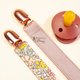 小宝贝在活动时, 奶嘴链可以防止安抚奶嘴遗失或掉落造成脏污 , 奶嘴链是英国LIBERTY FABRICS 印花布料 , 花样缤纷、可爱 , 布料细致亲肤、柔软 , 非常受到妈妈们喜爱的定制化布料首选。是女宝宝可爱加分的必备时尚穿搭配件!