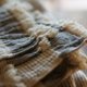 由不同密度的灰色纱线所制,产生具有不规则性的独特纹理;可以感受到双层纱布的皱纹感。