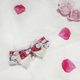 蝴蝶结以透光珍珠滚边纱与玫瑰织带点缀
