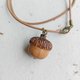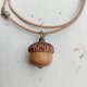 樱桃木雕刻成的小橡果项链;壳斗的部分有用火炙烤出了焦深色。