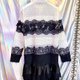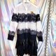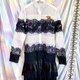 只此一件*黑白撞色蕾丝恤衫压褶长裙*