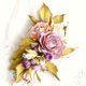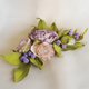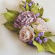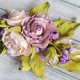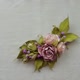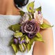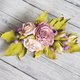 Light brooch made of Eva foam in vintage style. Suitable for your boho-style outfit, wedding, or cocktail dress. Fantasy flowers roses on brooch have soft pastel shades of olive, blueberry yogurt, muted purple, tender peach, and slight banana.