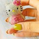 日本 水晶公仔 粉色经典Hello Kitty 手工黏贴 收藏古董 施华洛世奇水晶