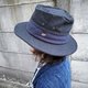 在帽身和帽檐部分采用了日本产的高档西装上常用的羊毛。不管衣服上有没有花纹,为了更容易搭配,我们采用了花纹不那么明显的羊毛布料呢。