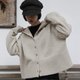 散发复古氛围的连帽短版针织外套 100%羊毛针织外套 米色251206-2