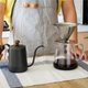 随手组起金属滤杯与玻璃壶,