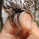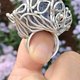 萤石原矿重39.6公克,长4厘米,宽3厘米,厚2.8厘米,纯银手工制作,国际戒围为16号(美国戒围9.5号),欢迎试戴。