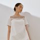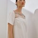 - 独特的方领拼接镂空网纱设计,胸前拼接网纱设计细节十分讲究,隐约露出女性性感的锁骨和肩部线条,结合法式方领设计,在视觉上拥有良好收肩效果。 布料舒适凉爽,再加上伞状版型的设计,任何体型和身形都能轻松穿着,简单俐落又不失柔美的设计,呈现清新自然