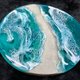Ocean resin vanity tray for beachy decor. This is a nightstand tray where you can put your perfume, night cream and cosmetics, rings and earrings, necklaces. Warm waves on the tray will warm your heart with the memories of the sea.