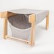 在想法的初始,已经把收纳方便及快速组装放入考量。 袋鼠窝的木框架设计成只有四个部件,然后采用可以重复多次拆装,耐得住长期摇晃的五金零件。
