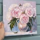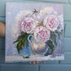 花卉油画 材料帆布面板、专业油画颜料、画笔、调色刀。尺寸高度:30 厘米;宽度:30cm;深度:0.5cm 油画《花瓶牡丹》(30-30 厘米)12\12 英寸 100% 手绘艺术家安娜·安东诺娃。这是一幅原画。准备发送 牡丹油画原创艺术厚