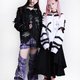 领片带有蕾丝装饰,整体有多处庞克风印花