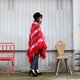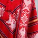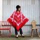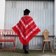 Description: F3066[Vintage斗篷]红色条纹白鱼织纹领口绑带流苏边斗篷