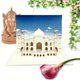 This beautiful Taj Mahal pop up card features intricate detailing not just on the outside of the temple, but also on the inside. Gift this to your cherished one, and watch their smile light up the room! It comes with an envelope that subtly shimmers in the light, perfect for special occasions.
