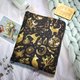 FEN手工小铺-F系列动物系列-美国限量薄棉布料满版黑底烫金猫与鸟布L型拉链袋加铺棉-电子书保护套-8寸L型拉链袋-预购款