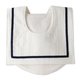 "bib-bab" Marine Style Bib can become outfits for going out. You can attract everybody's attention with this one bib. Characteristic Marine Style Bib's sailor collar looks cute even from the back. The chest pocket, which is made in 3D, has an opening on the top. Bib-bab's logo tag on the pocket is a small accent. A dapper style with tricolore stripe accents peeking from the collar and stitched onto the pocket.