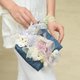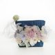 Blooming braided flower pouch is a fancy pouch of different material match of fluffy flower and denim woven plenty of air in the cloth of Organza.