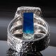 真正的珠宝艺术杰作:一枚镶嵌蓝色琥珀的别致戒指,由设计师手工打造而成。这款独一无二的作品融合了自然之美、珠宝匠的精湛技艺和时尚潮流,使其成为真正的专属珍品。戒指设计精致优雅,风格完美无瑕。原创的设计、简洁的线条、精美的造型以及蓝色琥珀的光泽,使其成为真正的珠宝臻品。