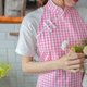 有滚边设计,胸前装饰开襟线,2对葫芦造型盘扣,粉红格纹亲和温柔,衬托出健康肤色,送礼自用皆宜。