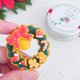 这是一款以树脂黏土制作、仿糖霜饼干风格的圣诞花环胸针。