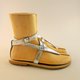 Make your casual summer style with these sandals with beautiful straps. They have a thong strap with a wrap around, adjustable buckle ankle strap in order to keep the foot stable. Made of 100% genuine leather in gold color.