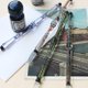 玻璃笔运用玻璃的虹吸现象,让墨水可以注入在笔管凹槽缝隙内并可暂存更多墨水,使用时墨水需至少蘸过笔尖的一半,并请倾斜笔身书写保持出墨流畅度,使用完毕以清水清洗后荫干即可保存收纳。