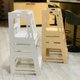 这座多功能塔是儿童进行各种活动的有用工具。它使他们能够安全地到达厨房台面、水槽或桌子,激发他们的好奇心,并让他们在日常任务中发挥积极作用。无论是帮忙准备食物、洗手,或是进行艺术和手工艺活动,蒙特梭利塔都为孩子们提供了探索和发展重要生活技能的机会。