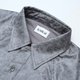 冰裂纹的麂皮衬衫,表面带有麂皮的特殊触感,背面是舒适触感的布料,上身整体带有垂度与光泽。