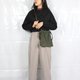 灯心绒束口斜背包 - 墨绿色