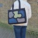 这款皮革托特包是一款功能性兼具的日常手提包,完美符合您的每日所需。宽敞的托特包采用天然柔软的午夜蓝麂皮制成,并饰有抽象的撞色贴饰。每一面的图案皆不相同,您可以随心情自由选择。这款包可肩背或手提。