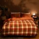 - 法兰绒寝|丰盈柔软、亲肤保暖 高速编织|不勾纱、不掉毛絮 分散印染|多次水洗不掉色 双面花色|格纹X暖橘色 商品内含|床包+枕套+被套 商品产地|台湾制造