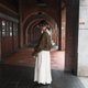 棉麻本身具有天然的质感,柔软却不失挺度,既能保证穿着的舒适度,又能让服装保持良好的结构感。这种材质在自然的光线下常能散发出柔和的光泽感,与围裹式、澎袖的设计相得益彰。