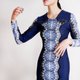 连肩袖下至领口处配合着图腾走向顺着体态,