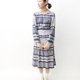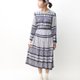 【RE0322D997】日本制格子碎花拼接格纹灰蓝色长袖春夏古着洋装