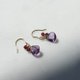 耳针由栗色紫水晶和圆形切割石榴石组合而成。对于紫水晶,我使用了稍微不寻常的栗子形状,中心有一个折痕状的斜坡。耳针钩和线材使用14KGF。耳针非常小,因此购买前请检查第五张图片中的尺寸。