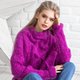 - Fuchsia Oversize Poncho Sweater. Hand Knitted. High-quality handmade.
