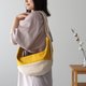 以曲线构成的圆润讲究造型,宛如“魔法神灯”般可爱。其圆润感能完美贴合身形。局部撞色设计,既能让包款整体更显俐落,也巧妙平衡了设计感。包口采用双拉链设计,可从习惯的位置开关;内侧两个口袋,透过开口大小的差异,让您一目了然知道物品放置在哪。容量恰好能收纳皮夹、手机、化妆包等小物,尺寸适中,让您轻便出行!此外,五金零件选用黄铜,并以双层缝制工法,坚固耐用。布料提供两种选择:“帆布×帆布”的双色拼接,休闲感十足;“帆布×斜纹布”则散发着高雅气质。颜色选择丰富,从充满夏日气息的清爽色调,到适合全年使用的沉稳色系,应有尽有!肩带可调式设计,可肩背或侧背,实现两种穿搭风格★希望这款温柔圆润的包款,能让您心情与身体都自在地出门。