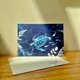 这幅以波光粼粼为主题的作品,以鸟瞰海面的角度为发想,想像阳光洒落在海浪上所形成的美丽波光,动物们悠游的身影,在无边际的大海中,似是孤寂却又是如此自由地存在。
